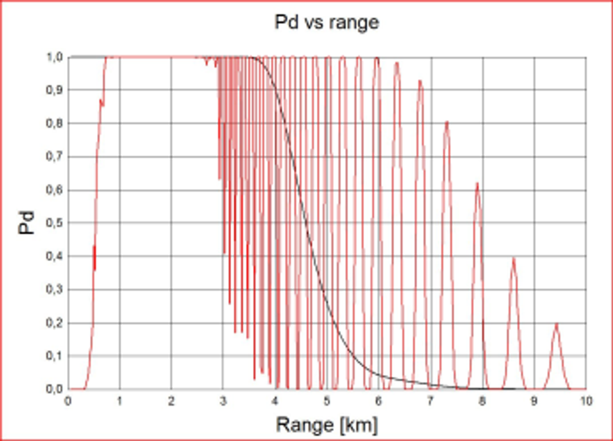 Signal til støyforhold, clutter til støyforhold og deteksjons-sannsynlighet som funksjon av avstand finnes ved et par tastetrykk. Det er også mulig å få ut track relaterte parametre som kumulativ sannsynlighet og punktsannsynlighet for track etablering.